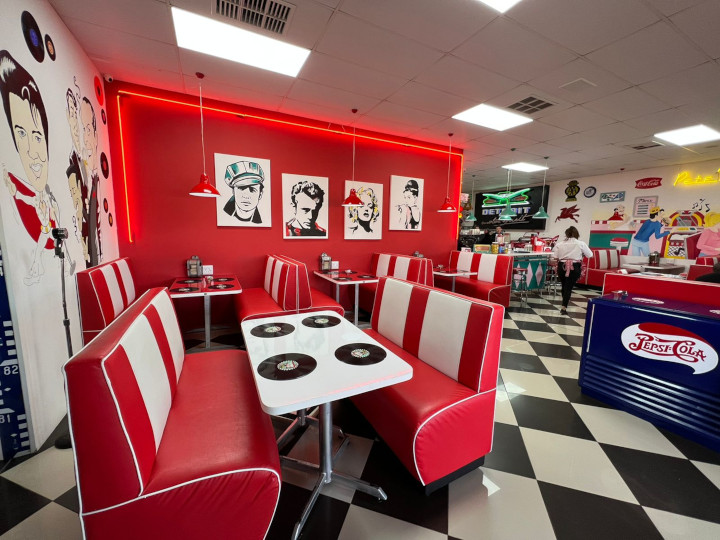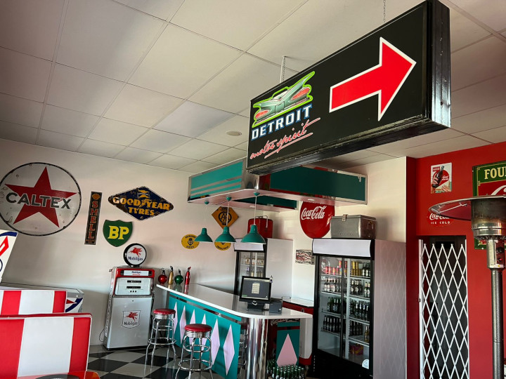 Themed around a 1960’s American diner, Pete’s collection of bygone era’s memorabilia draws you in!